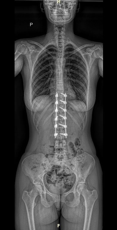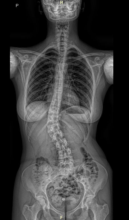 Jako první zobrazovací metodu obvykle provádíme RTG, případně EOS. Poskytuje nám obraz páteře v předozadní a boční rovině a umožňuje měřit stupeň zakřivení. RTG provádíme pravidelně na každé kontrole k posouzení vývoje křivky.